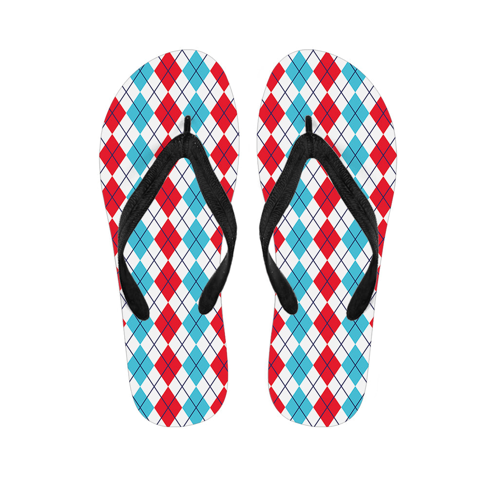 Red And Blue Argyle Pattern Print Flip Flops For Men Women