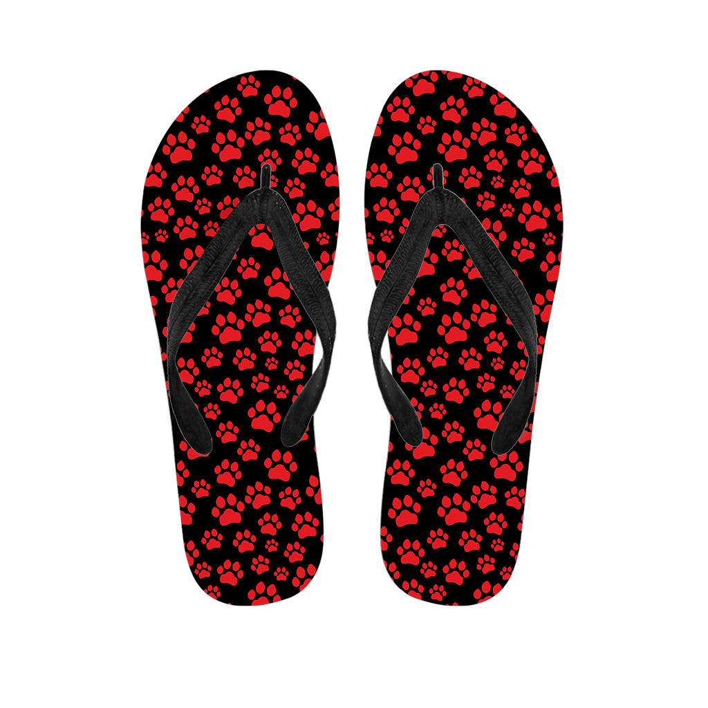 Red And Black Paw Pattern Print Flip Flops For Men Women