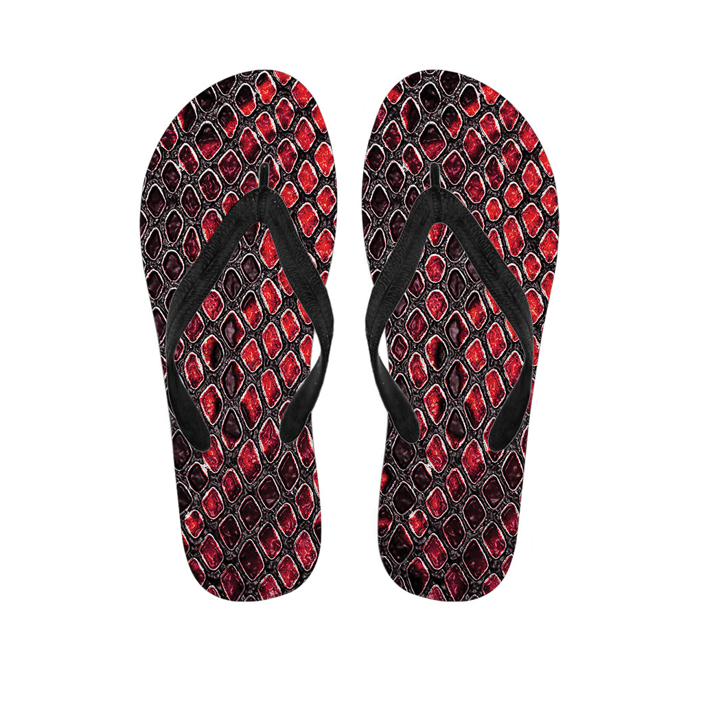 Red And Black Snakeskin Print Flip Flops For Men Women