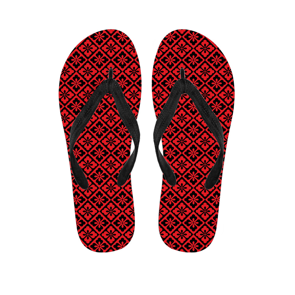 Red And Black Japanese Pattern Print Flip Flops For Men Women