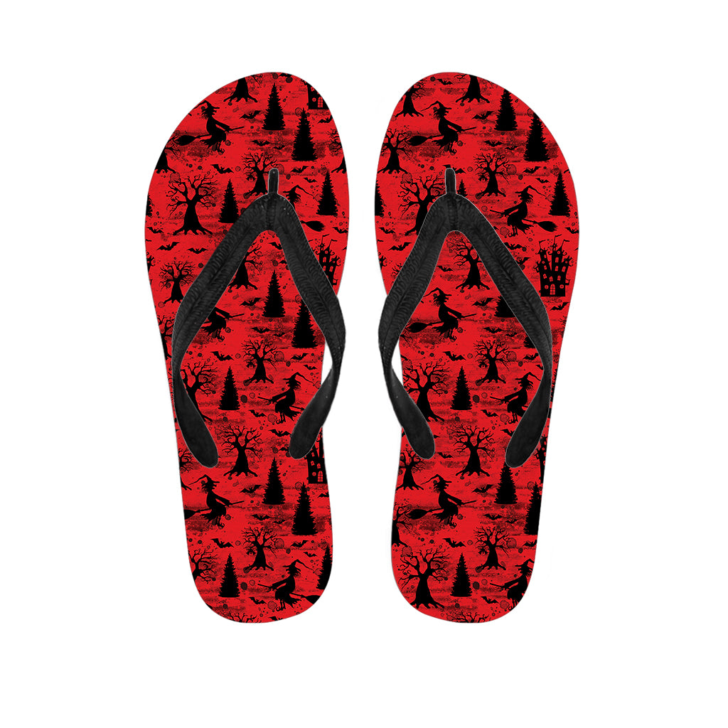 Red And Black Horror Witch Pattern Print Flip Flops For Men Women