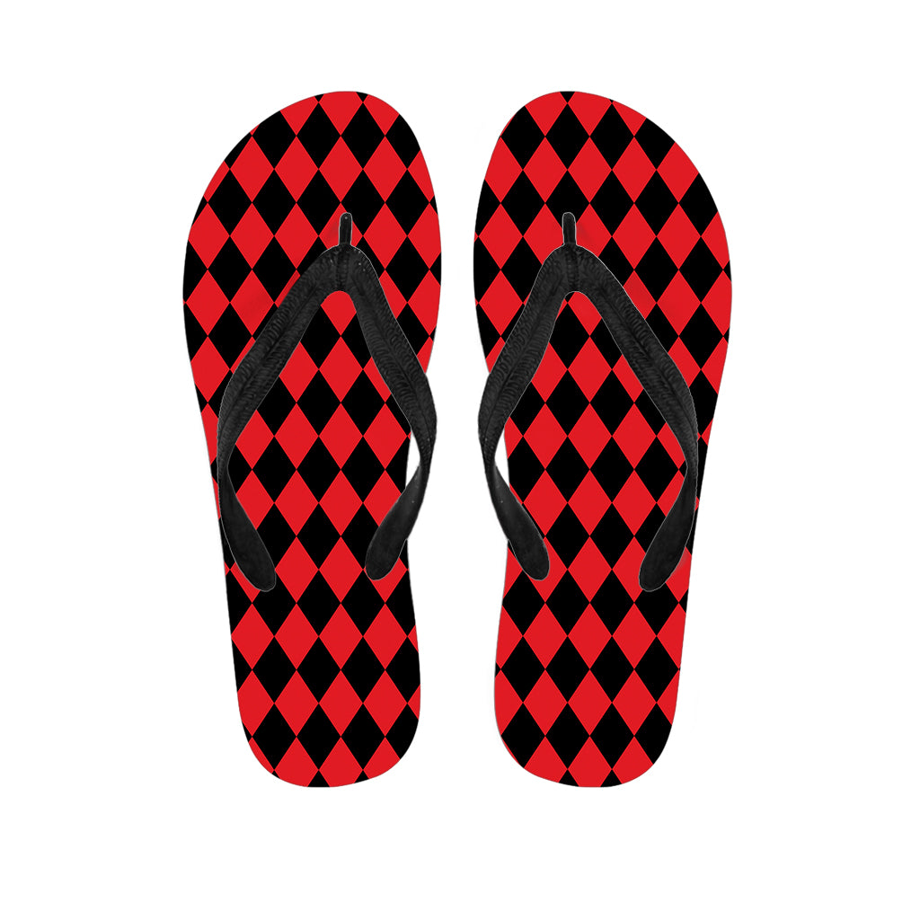 Red And Black Harlequin Pattern Print Flip Flops For Men Women