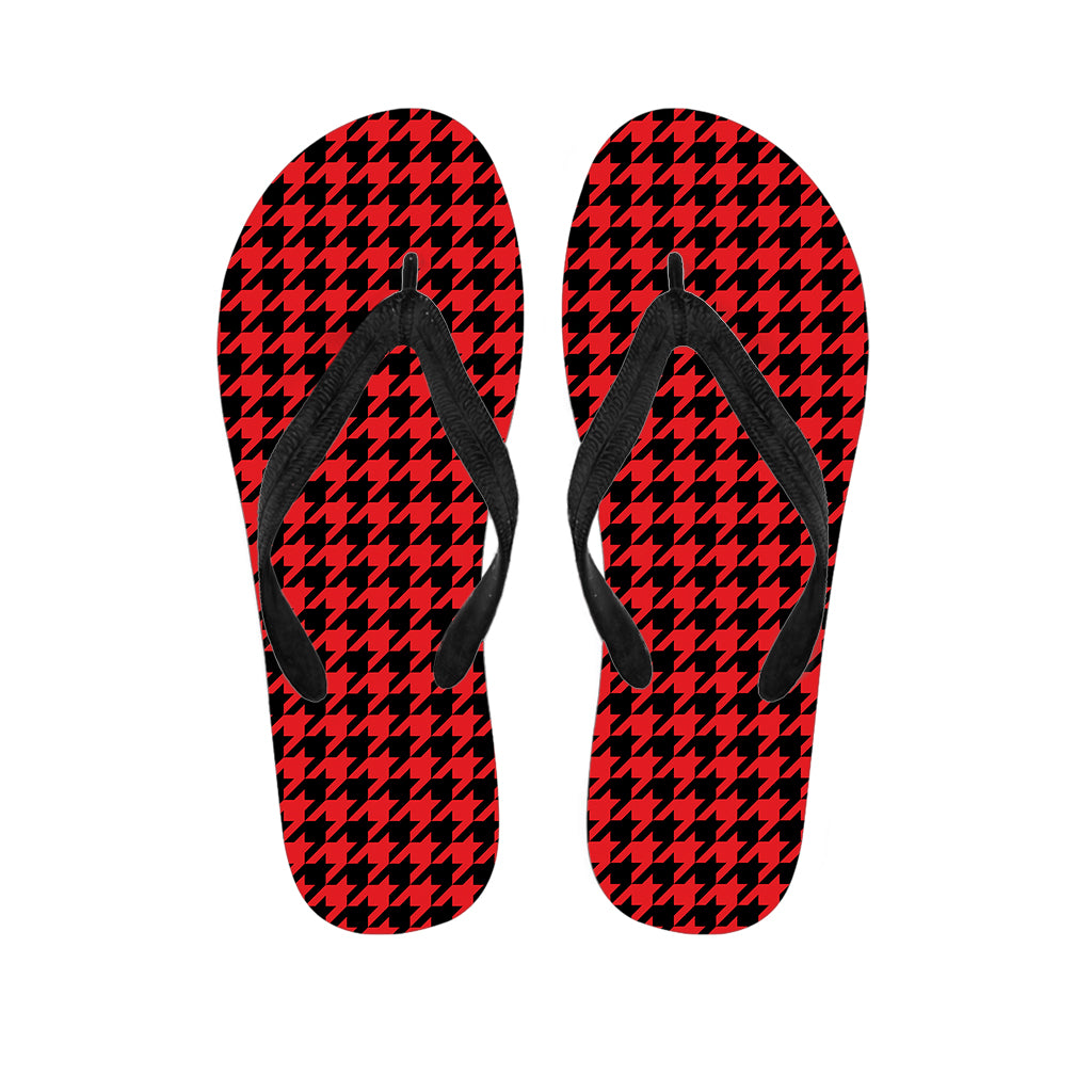 Red And Black Houndstooth Pattern Print Flip Flops For Men Women