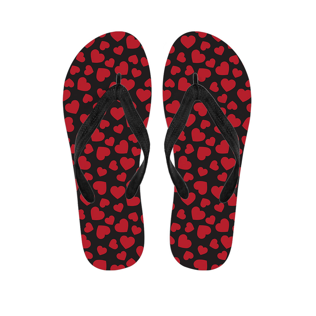 Red And Black Heart Pattern Print Flip Flops For Men Women