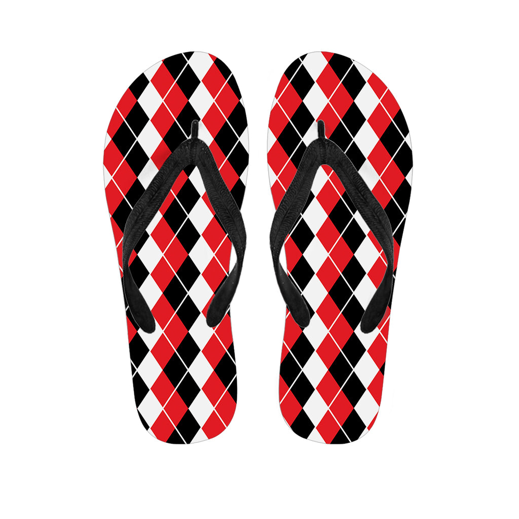 Red Black And White Argyle Pattern Print Flip Flops For Men Women