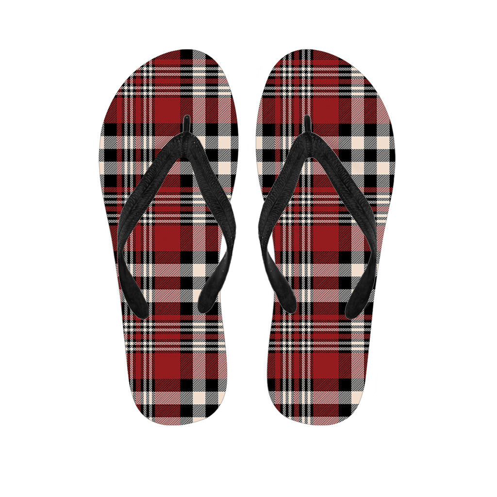 Red Black And White Scottish Plaid Print Flip Flops For Men Women