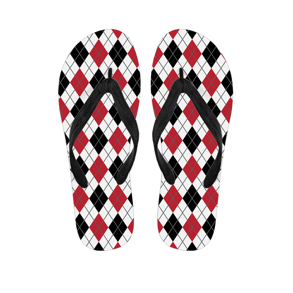 Red Black And White Argyle Print Flip Flops For Men Women