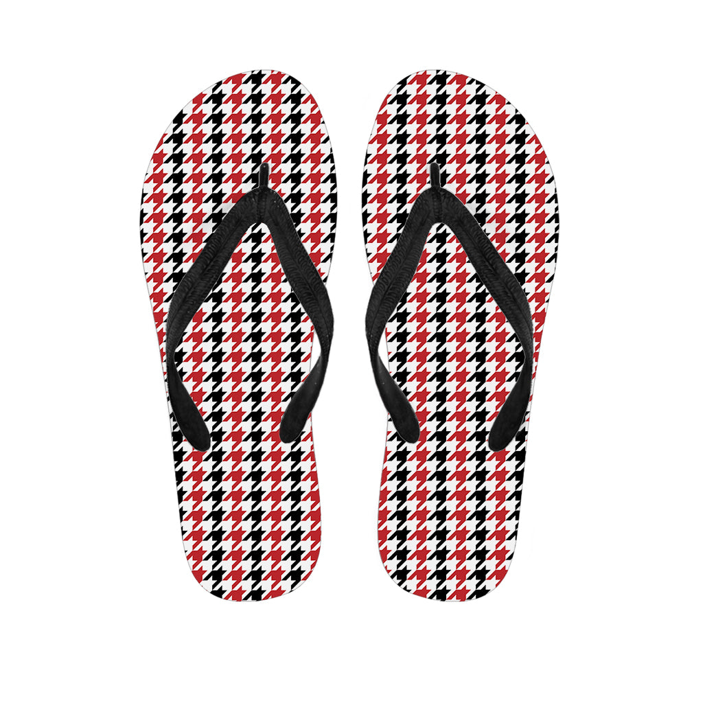 Red Black And White Houndstooth Print Flip Flops For Men Women