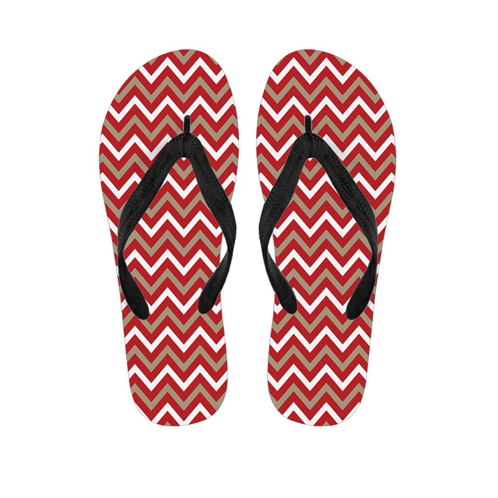Red Beige And White Chevron Print Flip Flops For Men Women