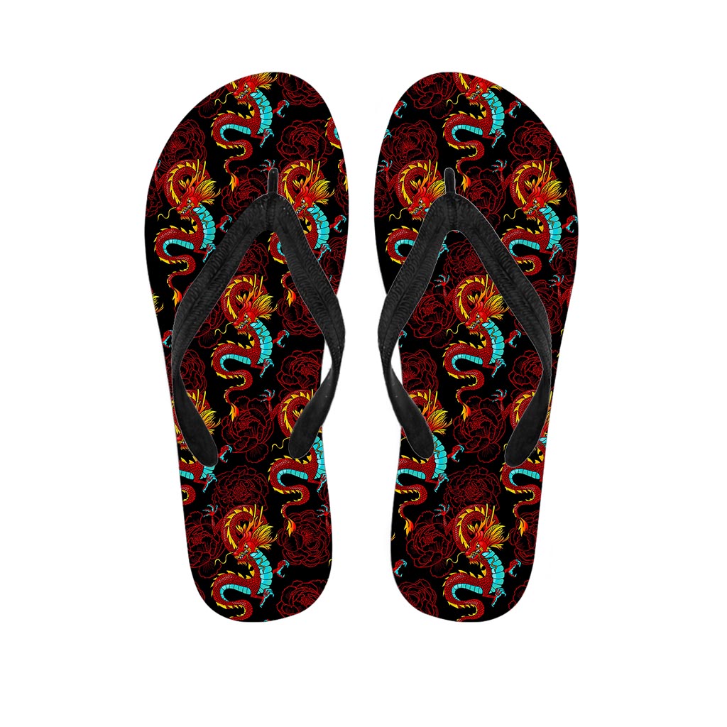 Red Dragon Lotus Pattern Print Flip Flops For Men Women