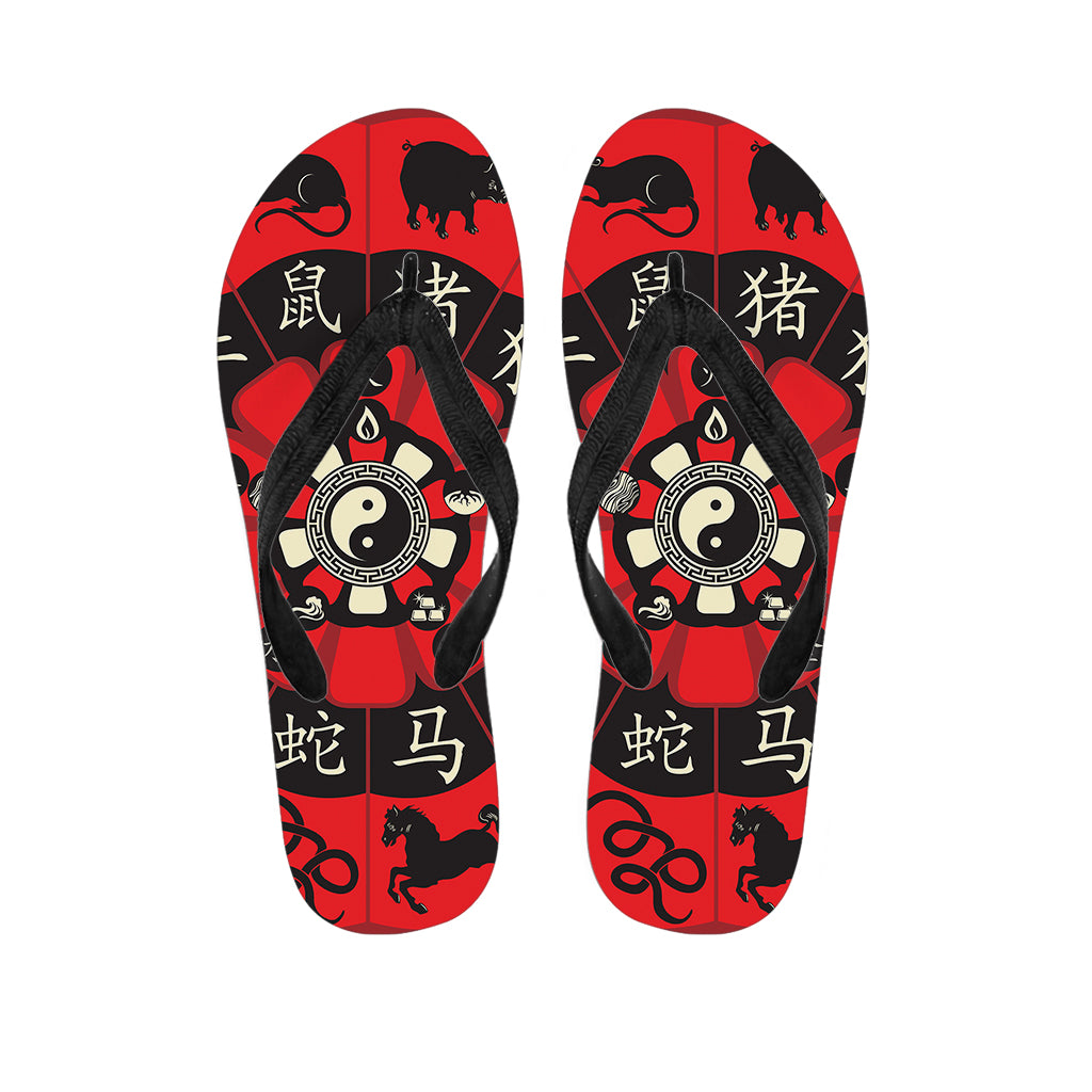 Red Chinese Zodiac Wheel Print Flip Flops For Men Women
