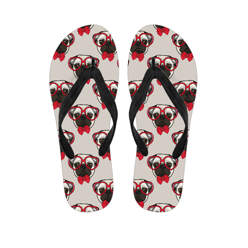 Red Glasses Pug Pattern Print Flip Flops For Men Women