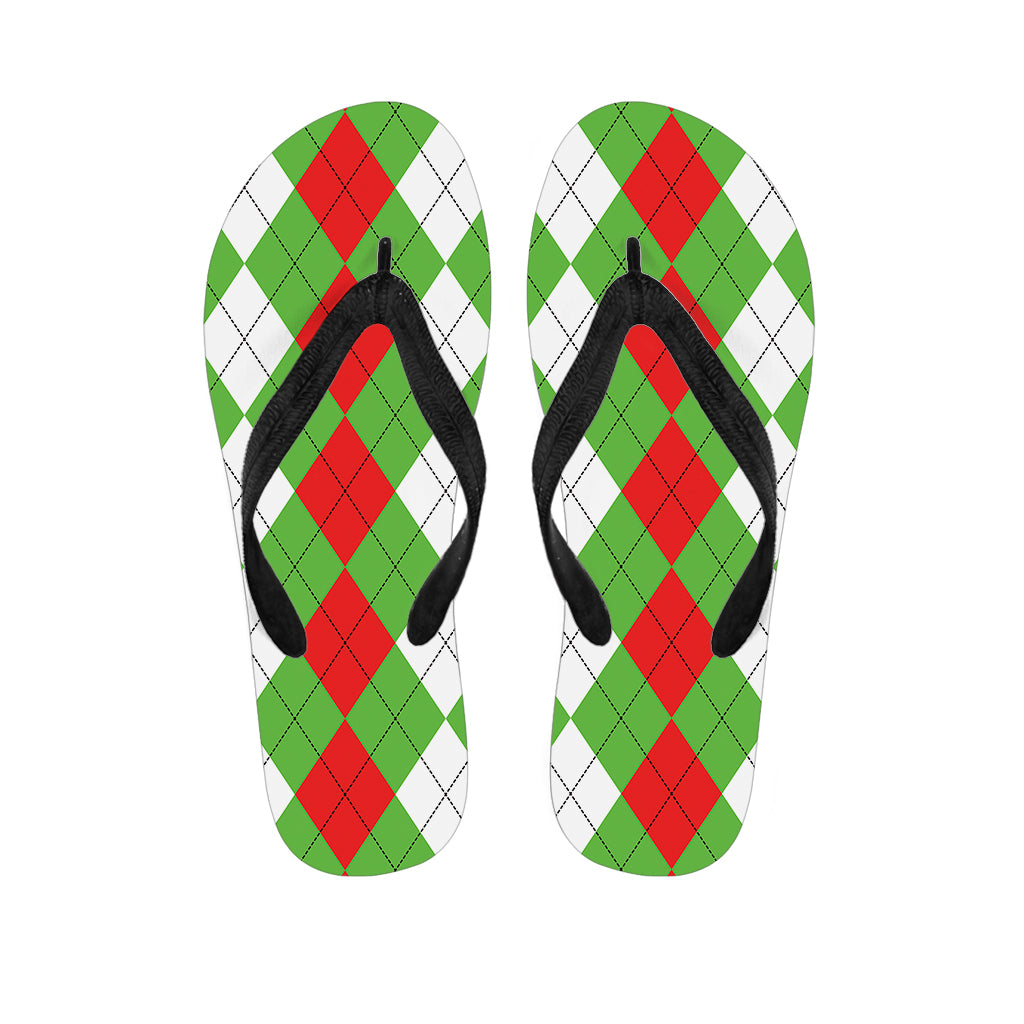 Red Green And White Argyle Pattern Print Flip Flops For Men Women