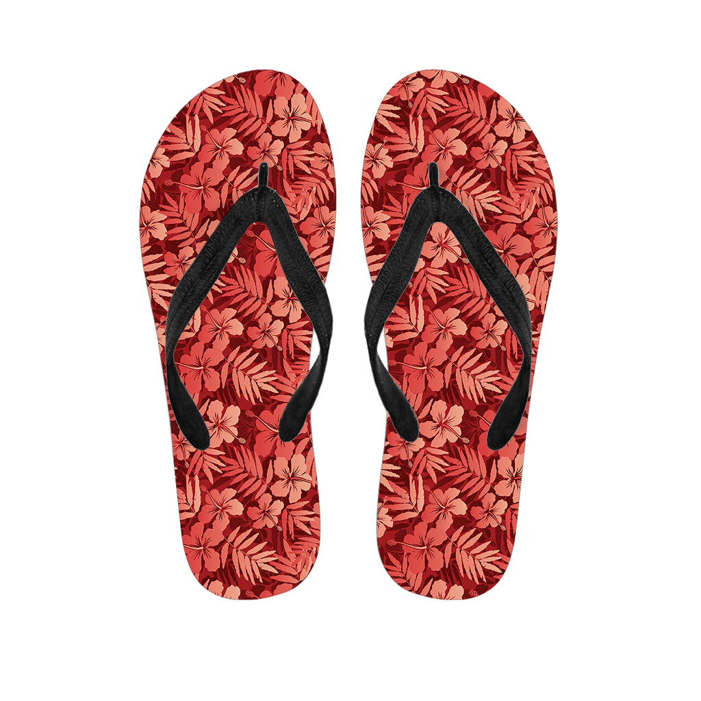 Red Hawaiian Tropical Pattern Print Flip Flops For Men Women