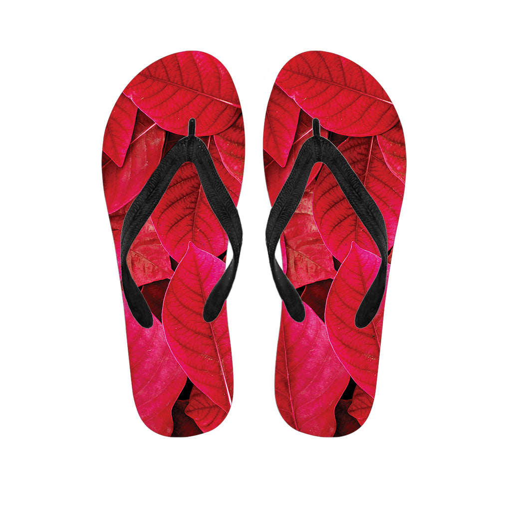 Red Leaf Print Flip Flops Summer Outerwear For Men Women