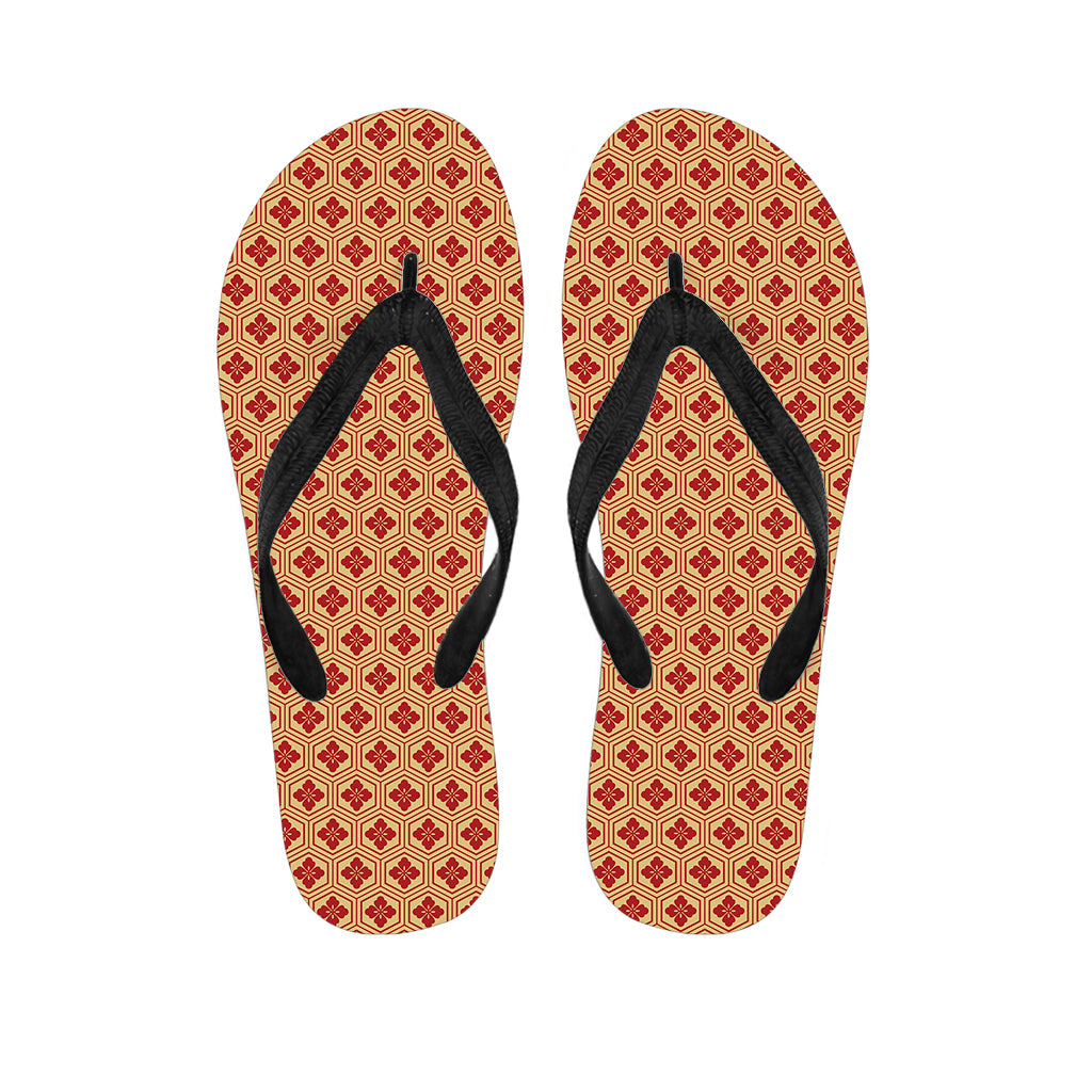 Red Japanese Flower Pattern Print Flip Flops For Men Women