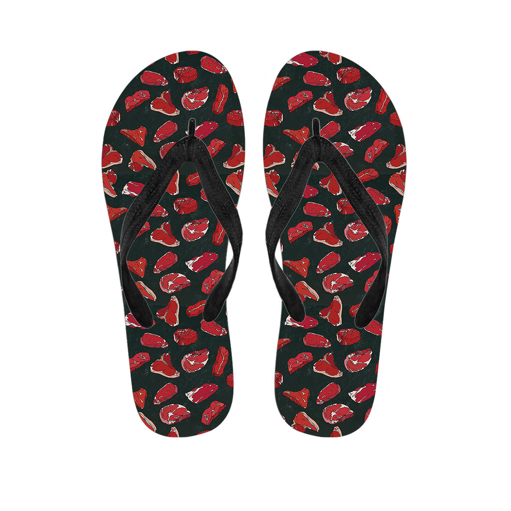 Red Meat Print Flip Flops Summer Outerwear For Men Women