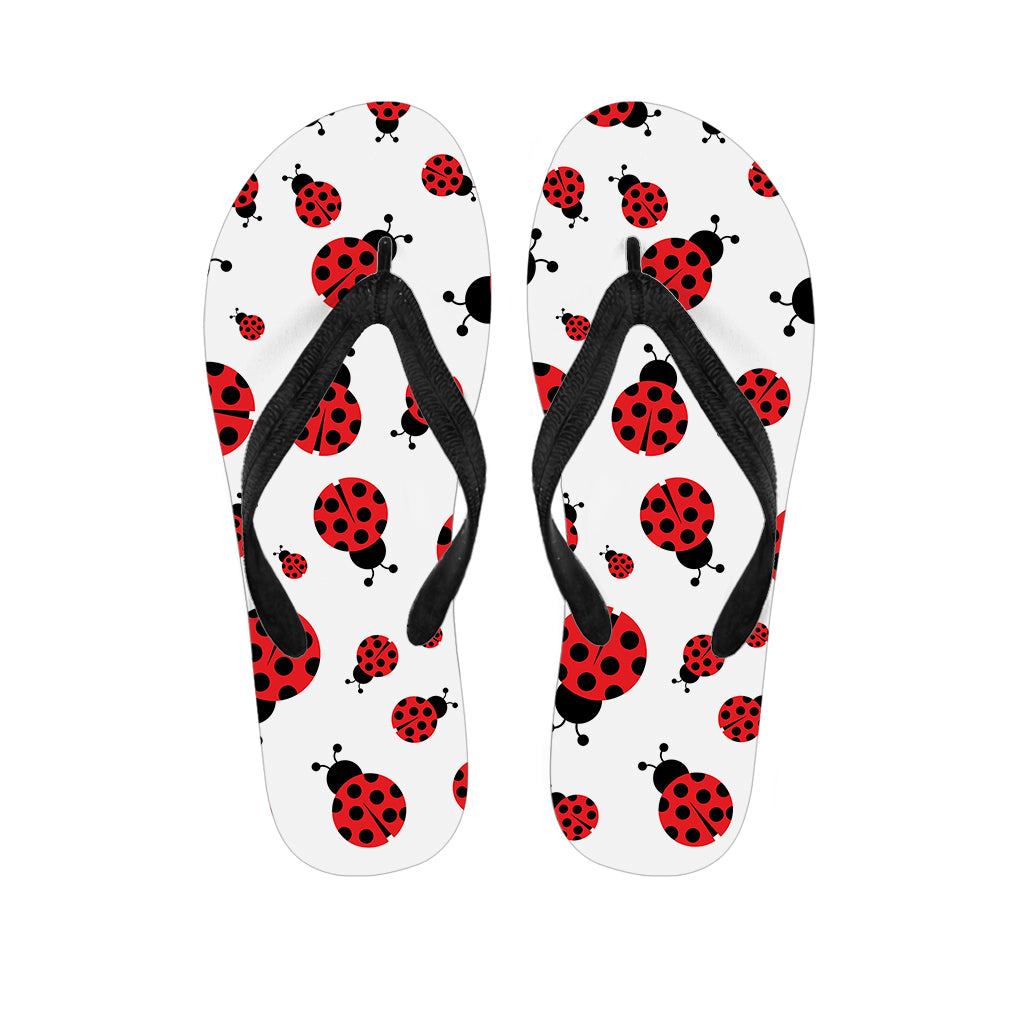 Red Ladybug Pattern Print Flip Flops For Men Women