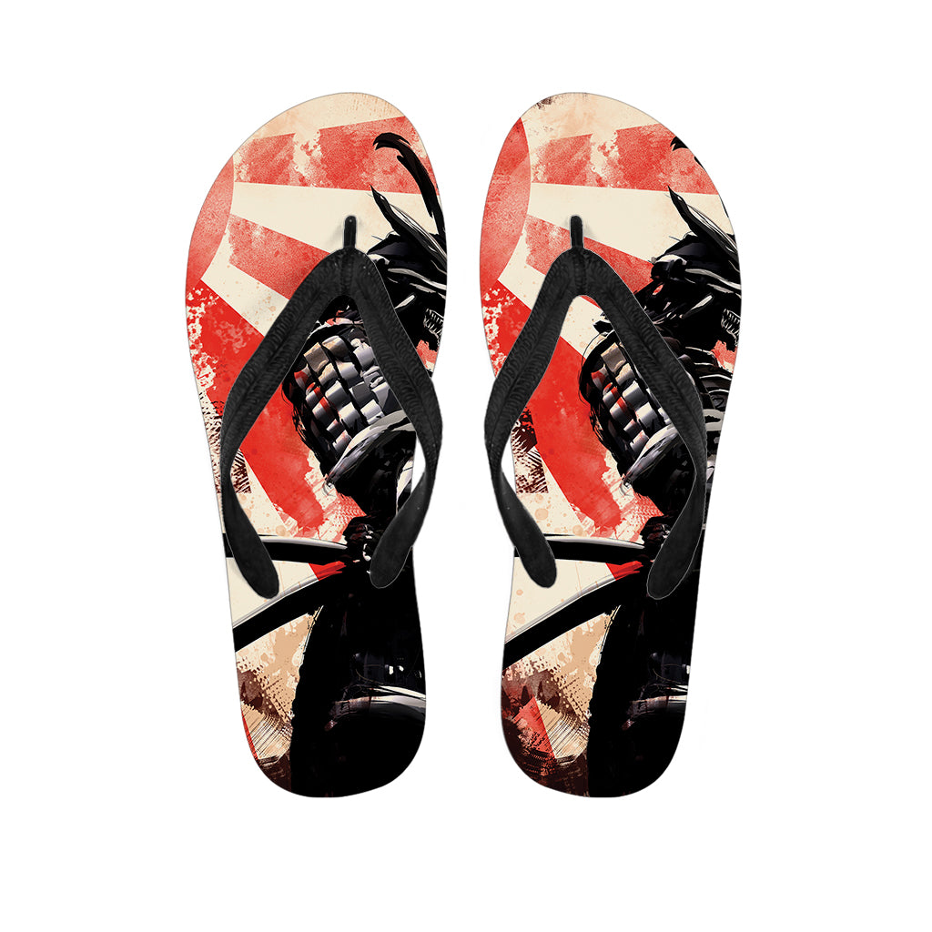 Red Rising Sun Samurai Print Flip Flops For Men Women