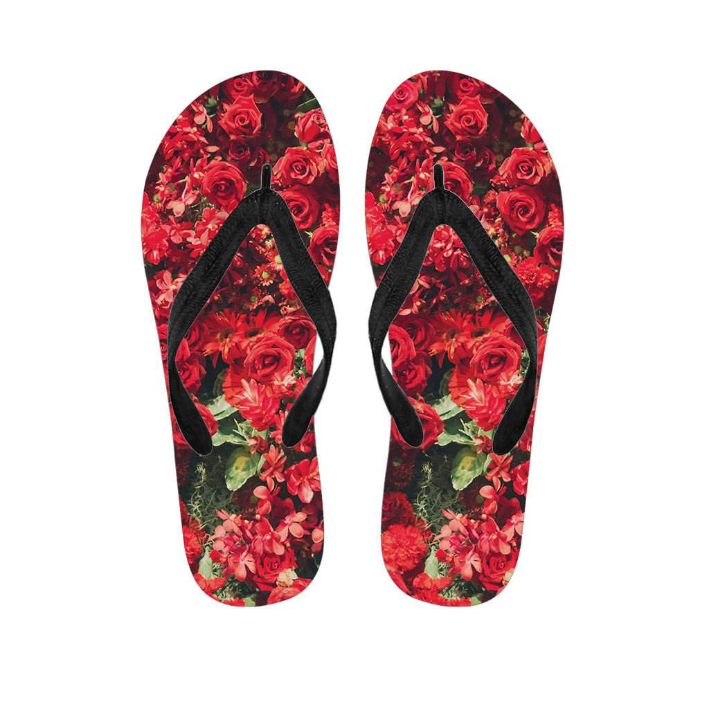 Red Rose Floral Flower Pattern Print Flip Flops For Men Women