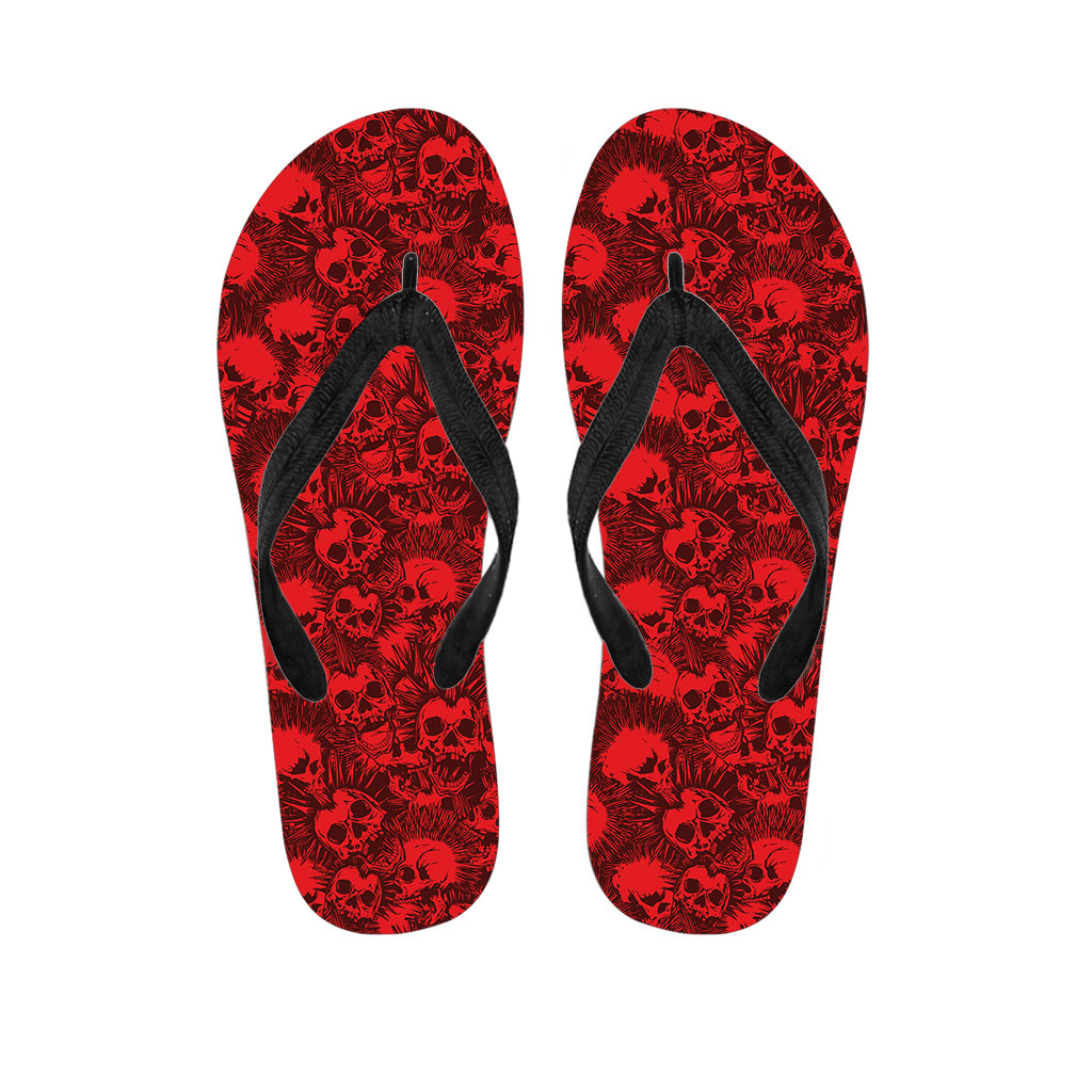 Red Punk Skull Pattern Print Flip Flops For Men Women