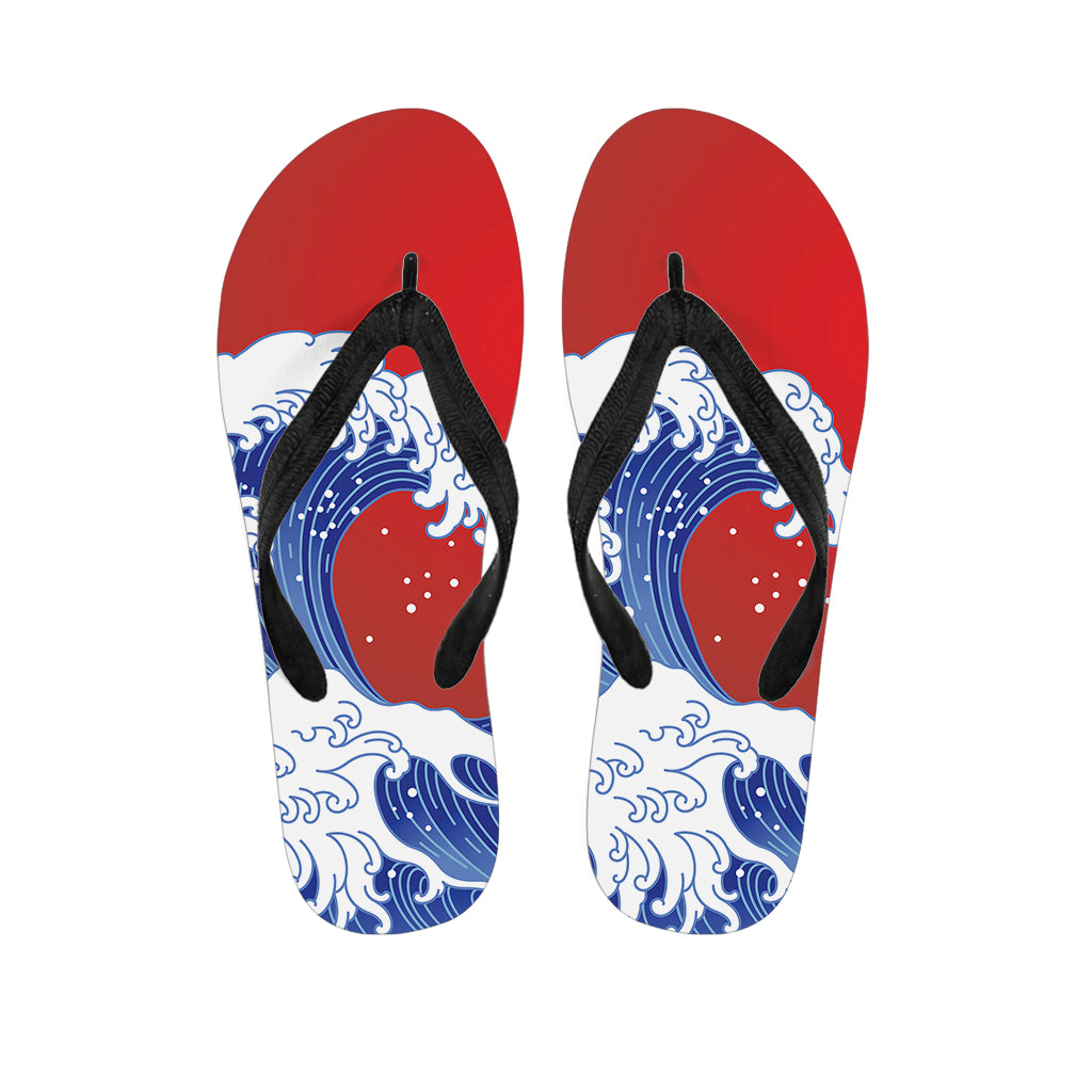 Red Sun Japanese Wave Print Flip Flops For Men Women