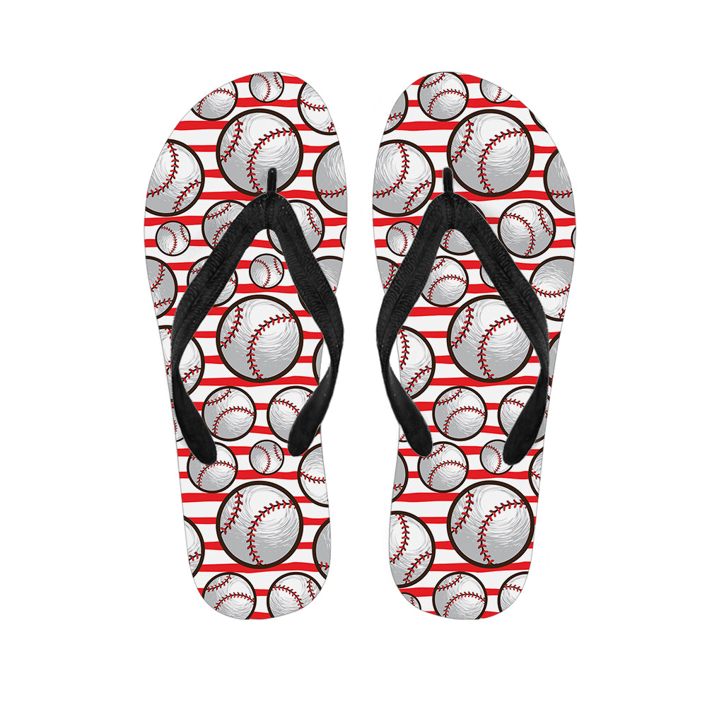Red Striped Baseball Pattern Print Flip Flops For Men Women