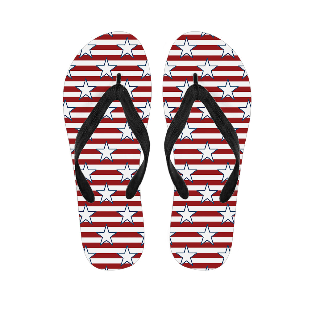 Red Striped Usa Star Pattern Print Flip Flops For Men Women