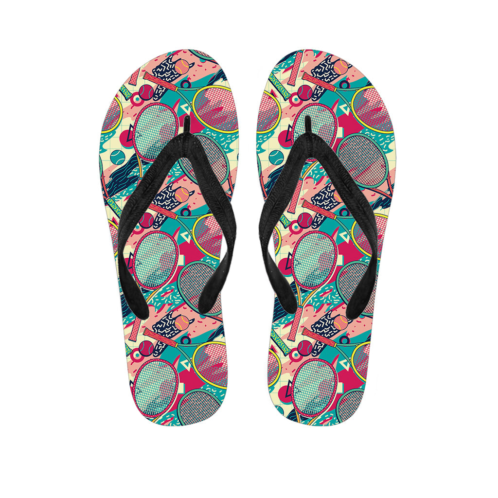 Retro Tennis Pattern Print Flip Flops For Men Women