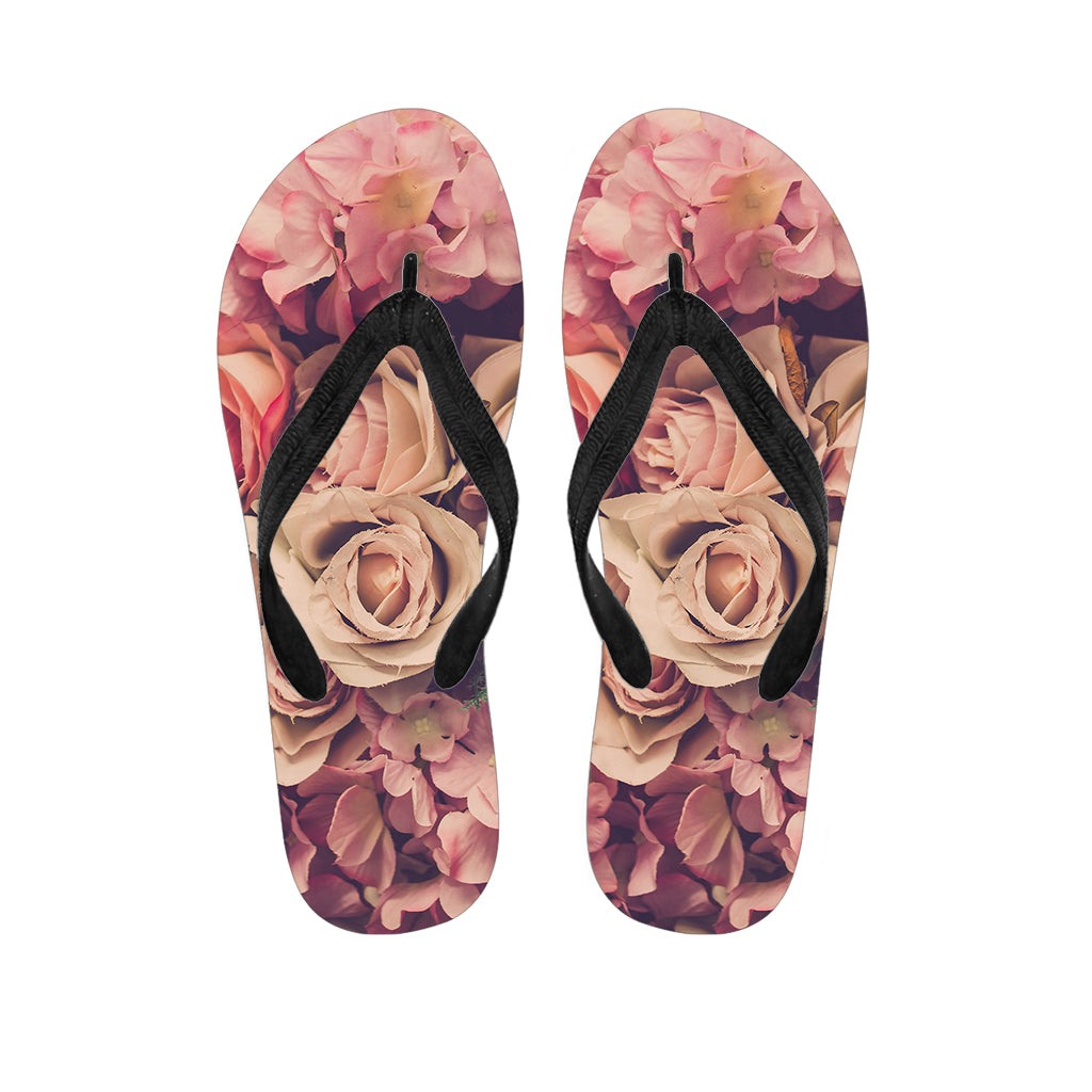 Retro Pink Roses Floral Print Flip Flops For Men Women