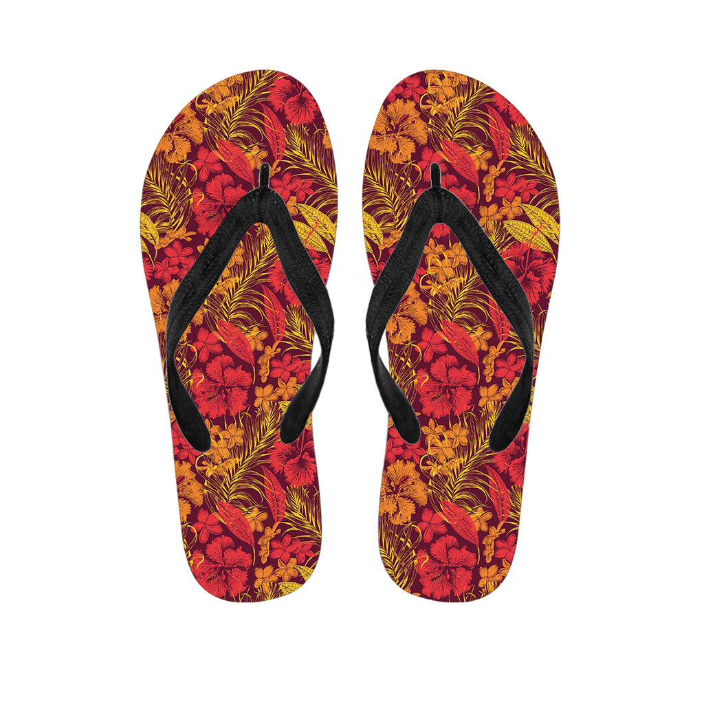 Retro Hawaiian Tropical Floral Print Flip Flops For Men Women