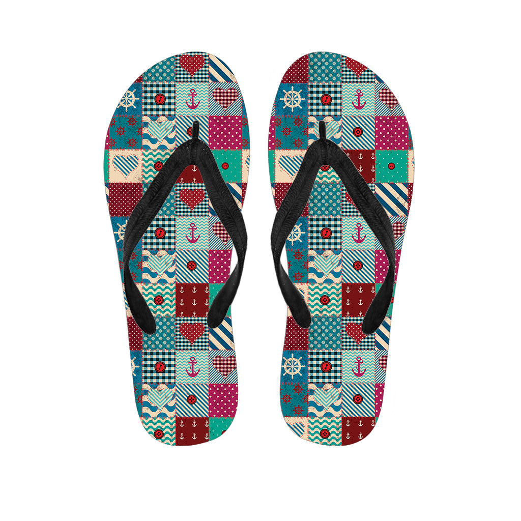Retro Nautical Patchwork Pattern Print Flip Flops For Men Women