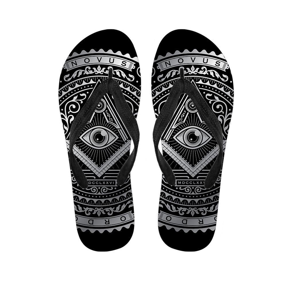 Silver And Black All Seeing Eye Print Flip Flops For Men Women