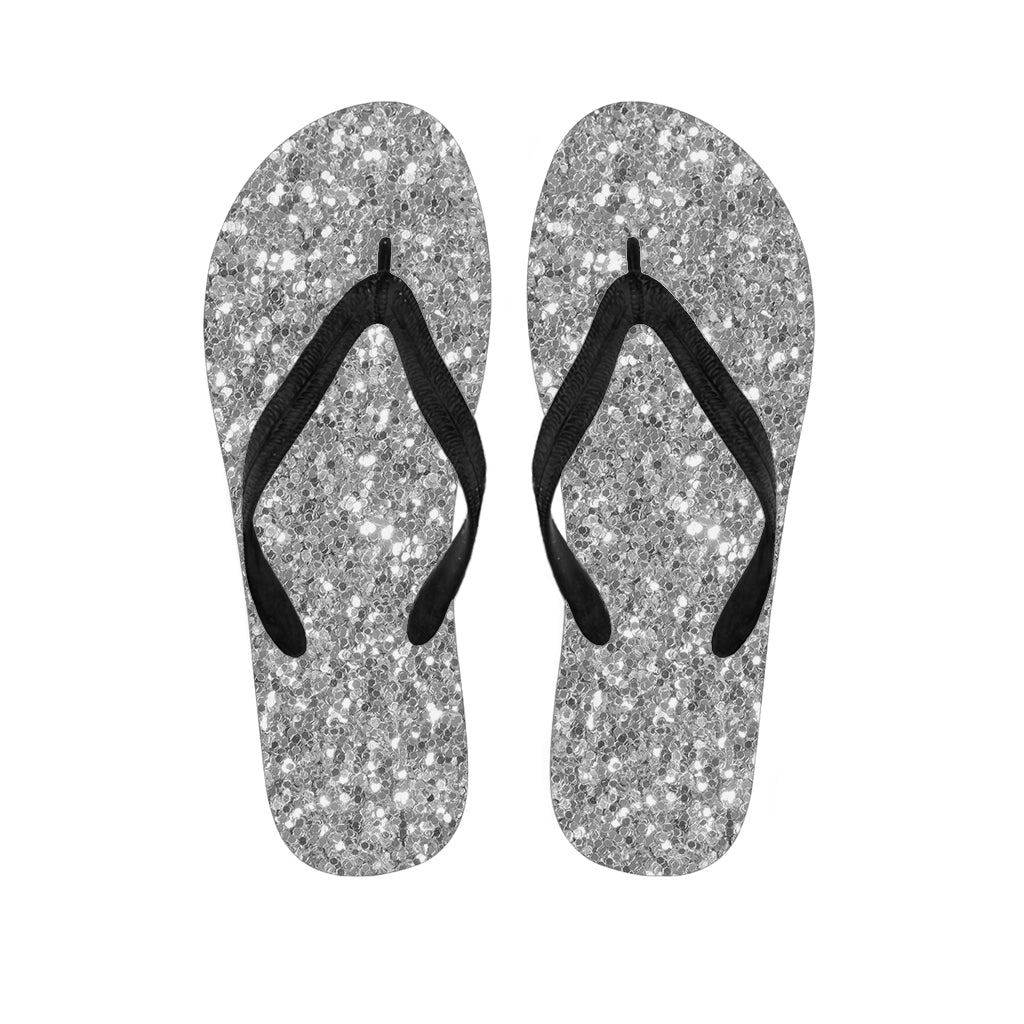 Silver Glitter Print Flip Flops For Men Women