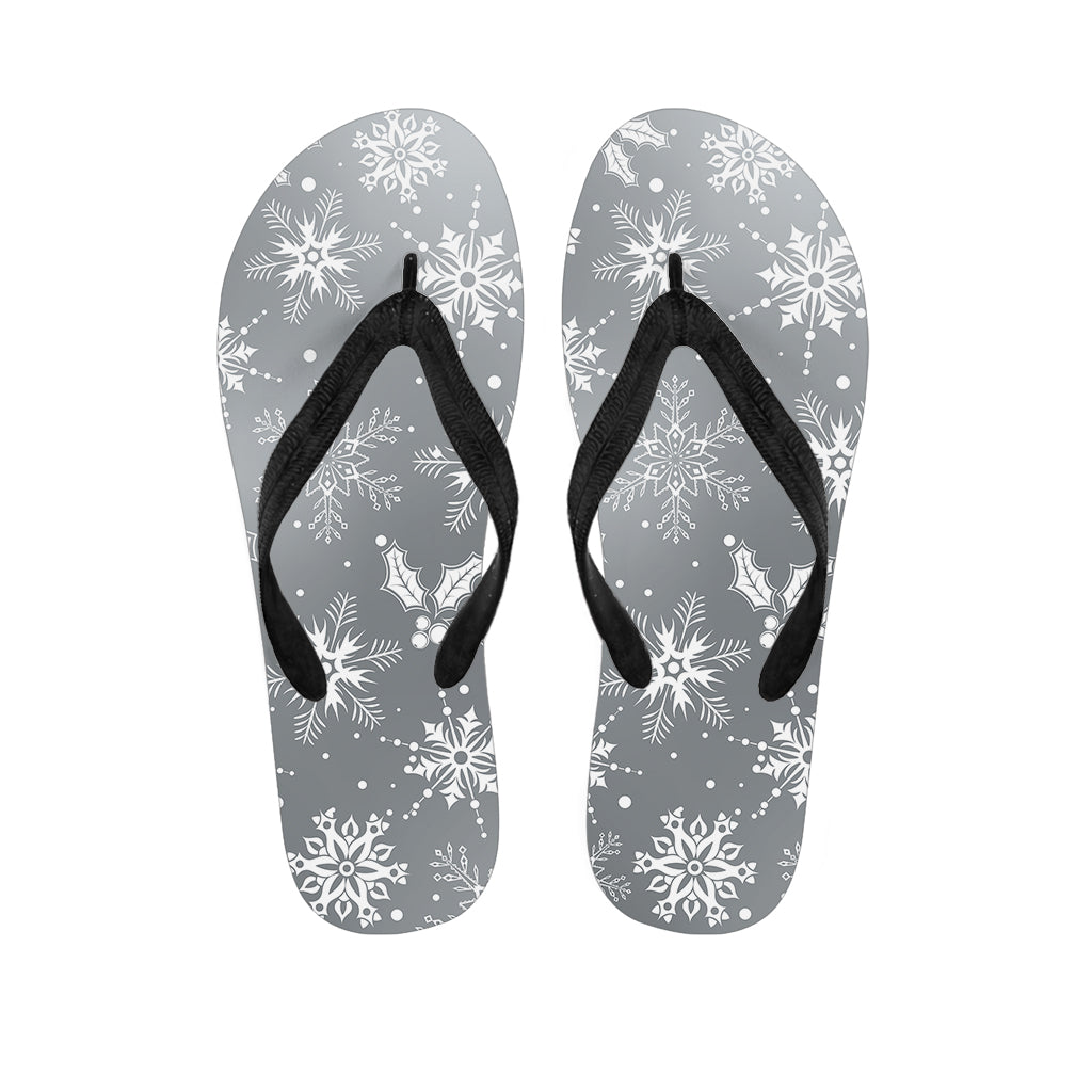 Silver And White Snowflake Pattern Print Flip Flops For Men Women