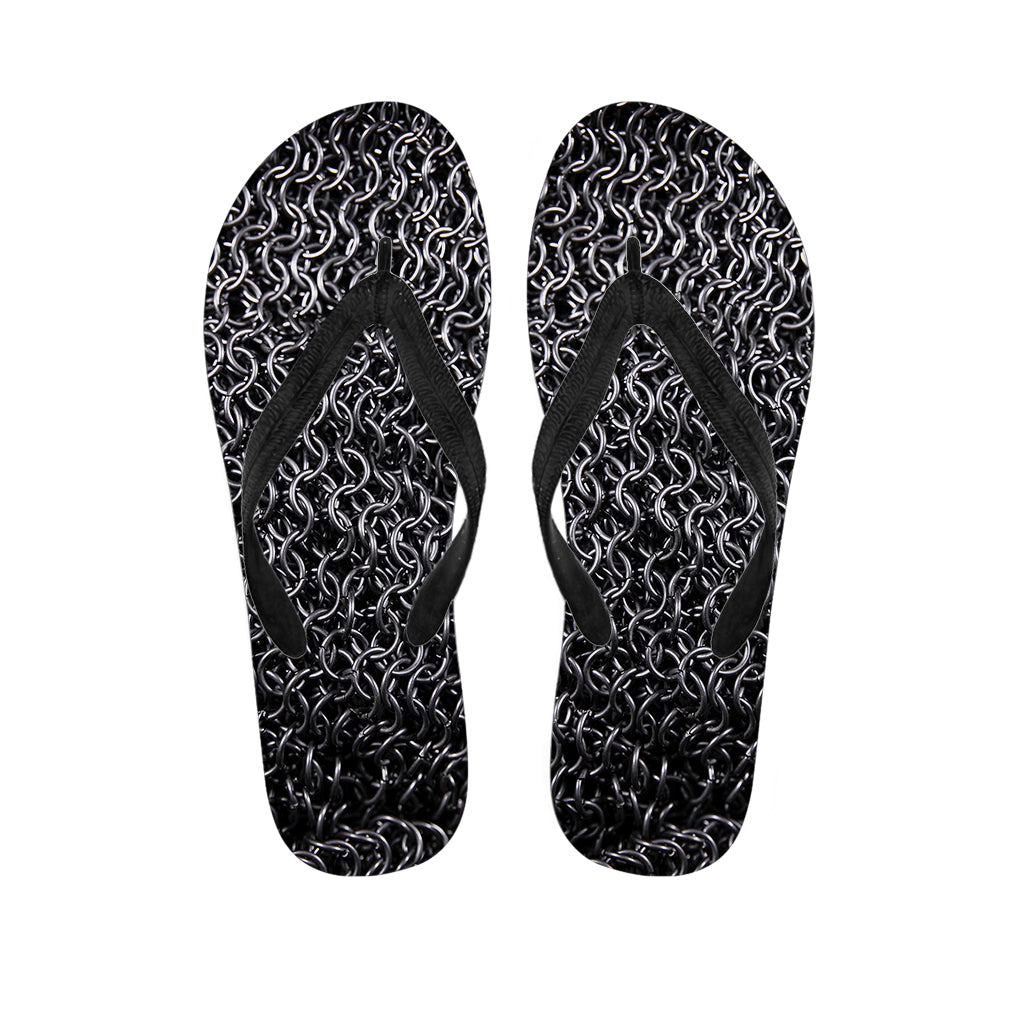 Silver Chainmail Print Flip Flops For Men Women