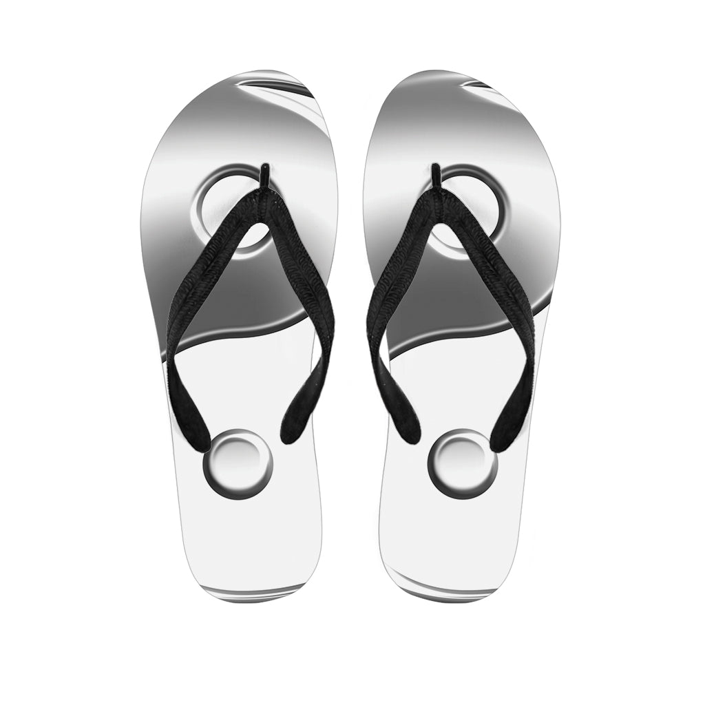 Sliver And White Yin Yang Print Flip Flops For Men Women