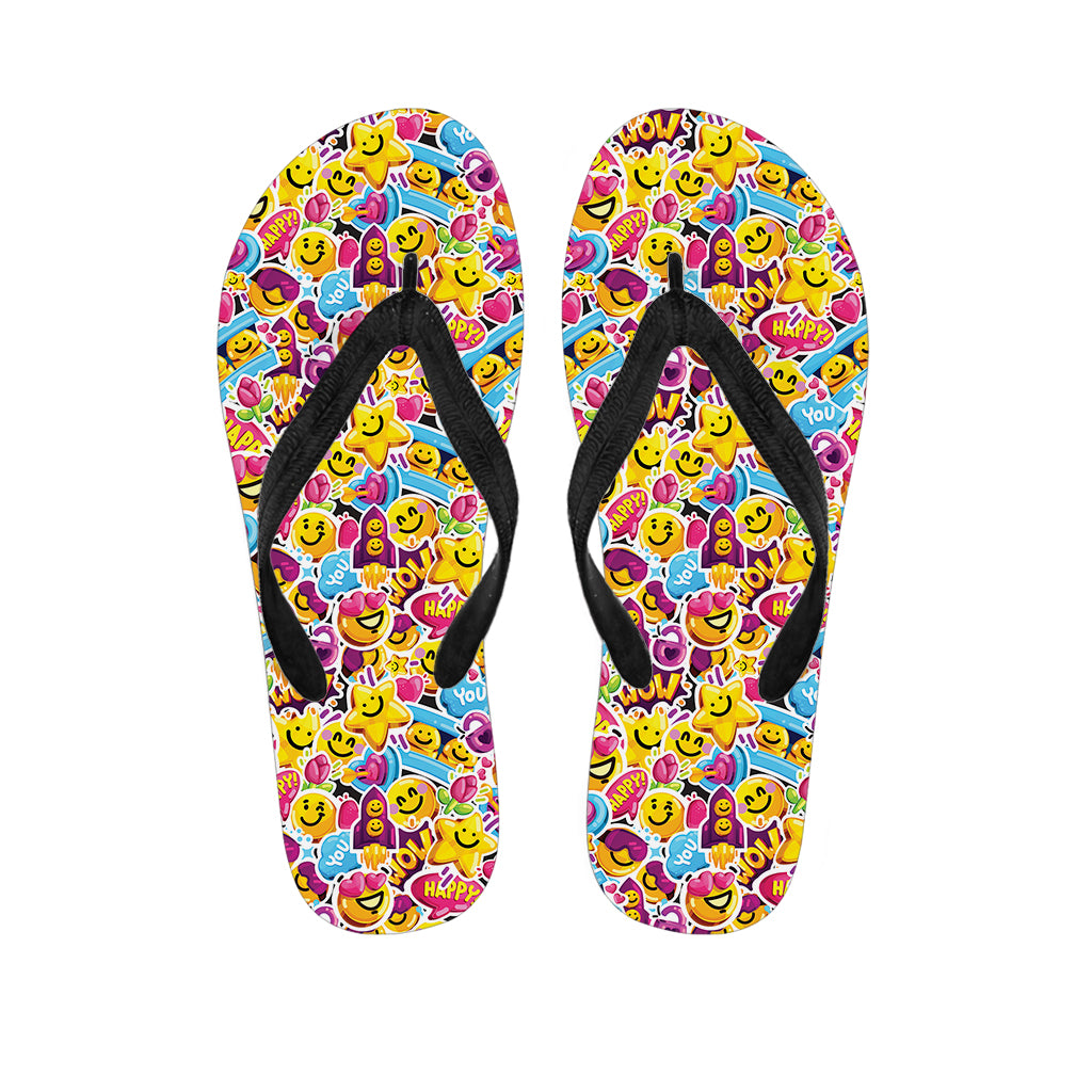 Smiley Faces Emoji Pattern Print Flip Flops For Men Women