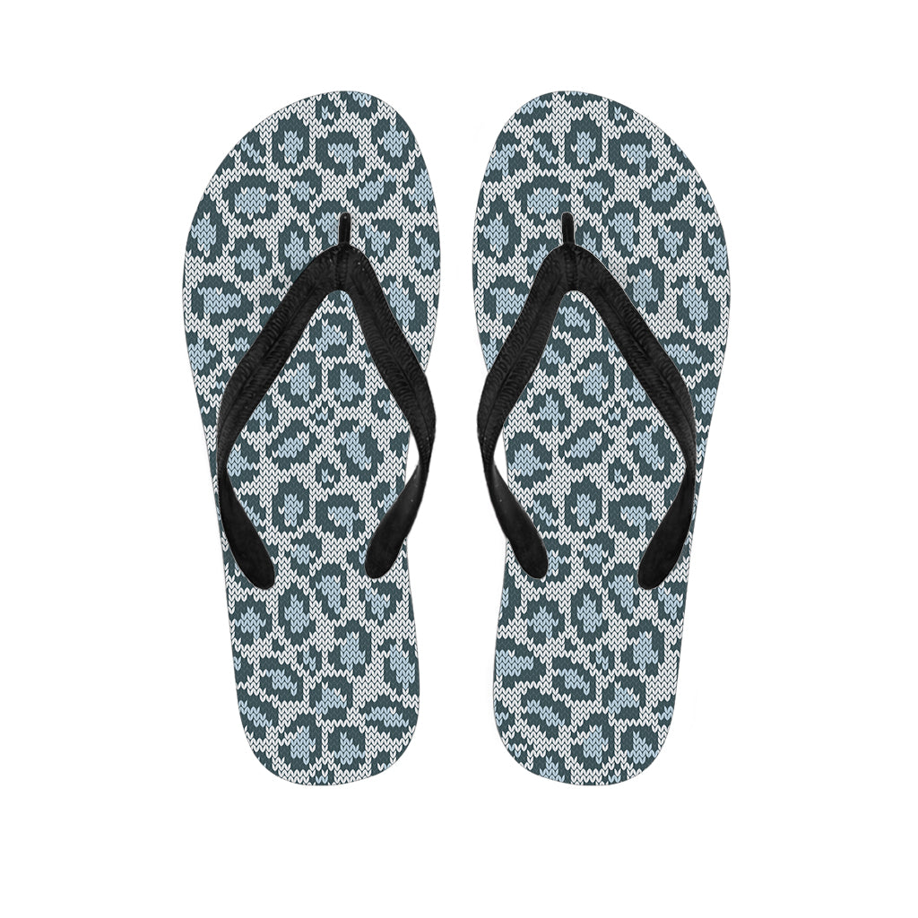Snow Leopard Knitted Pattern Print Flip Flops For Men Women