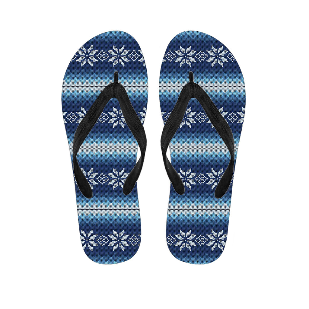 Snowflakes Knitted Pattern Print Flip Flops For Men Women