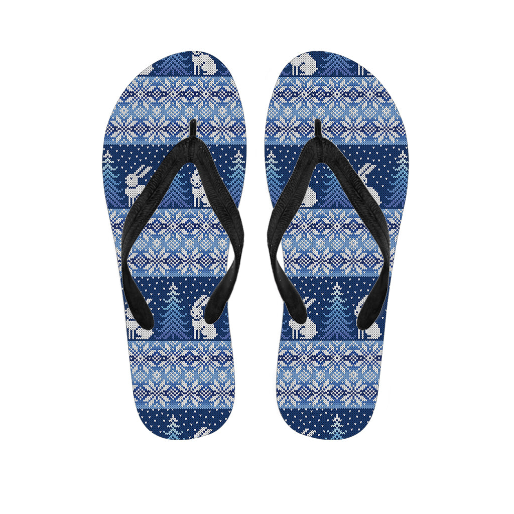 Snow Rabbit Knitted Pattern Print Flip Flops For Men Women