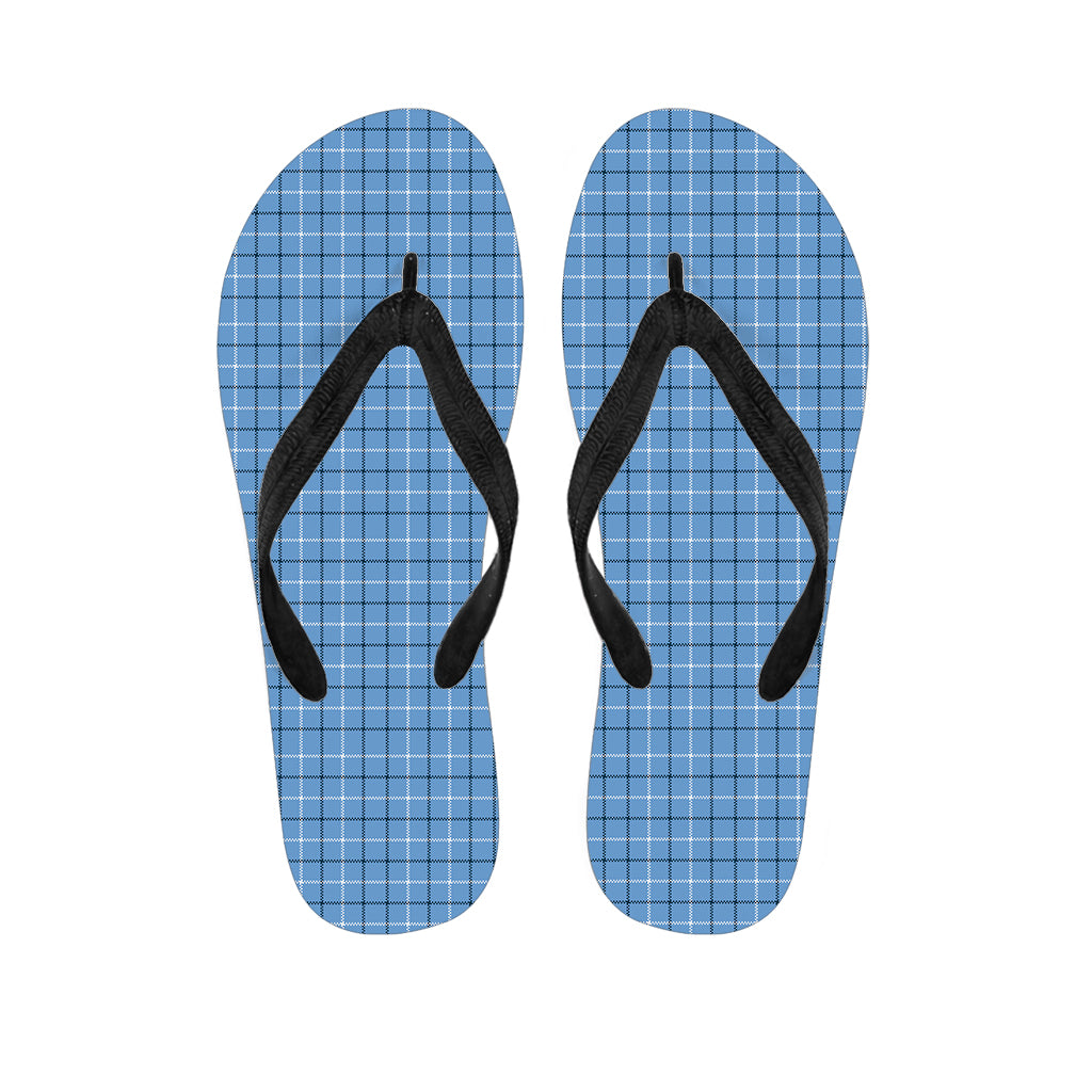 Solf Blue Tattersall Pattern Print Flip Flops For Men Women