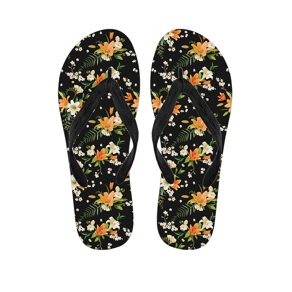 Spring Lily Flowers Pattern Print Flip Flops For Men Women