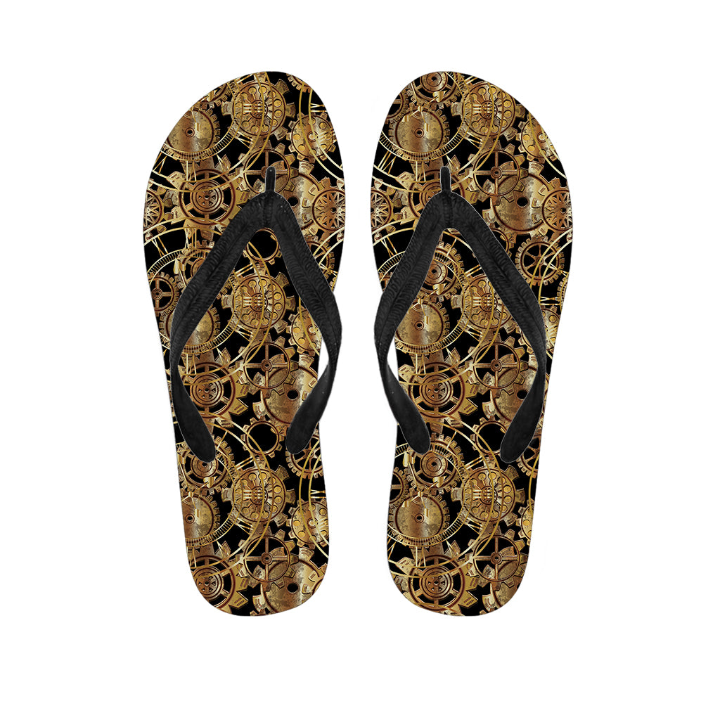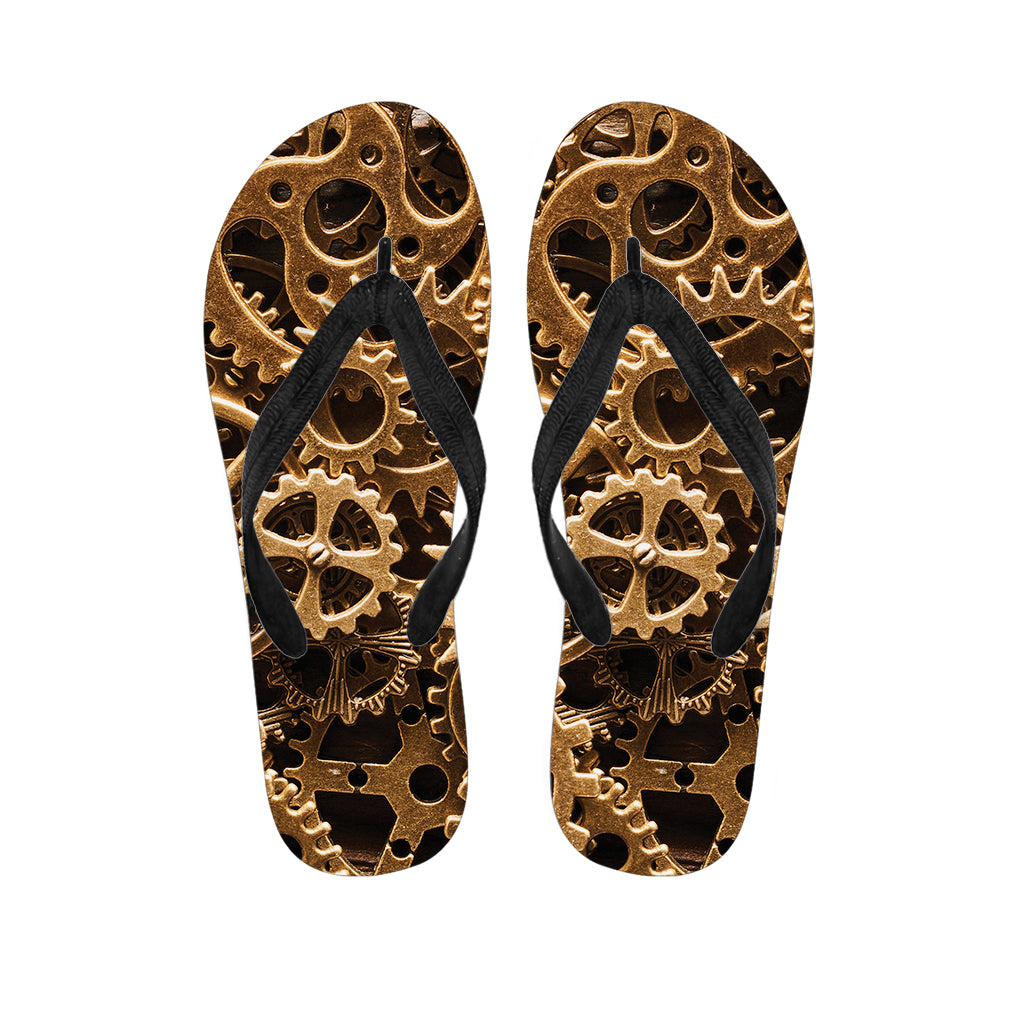 Steampunk Brass Cogs And Gears Print Flip Flops For Men Women