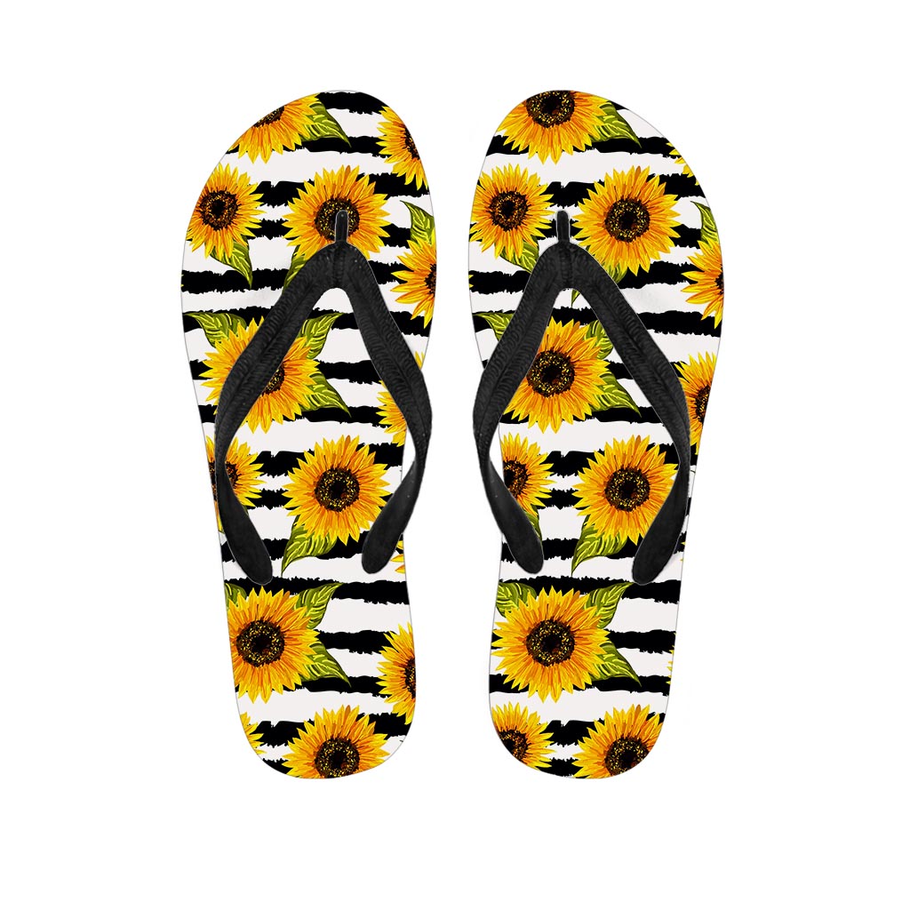 Sunflower Striped Pattern Print Flip Flops For Men Women