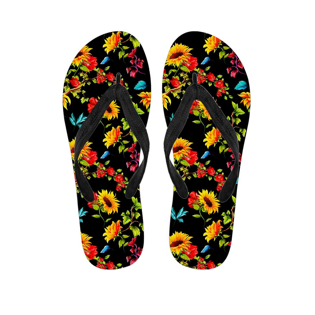 Sunflower Floral Pattern Print Flip Flops For Men Women