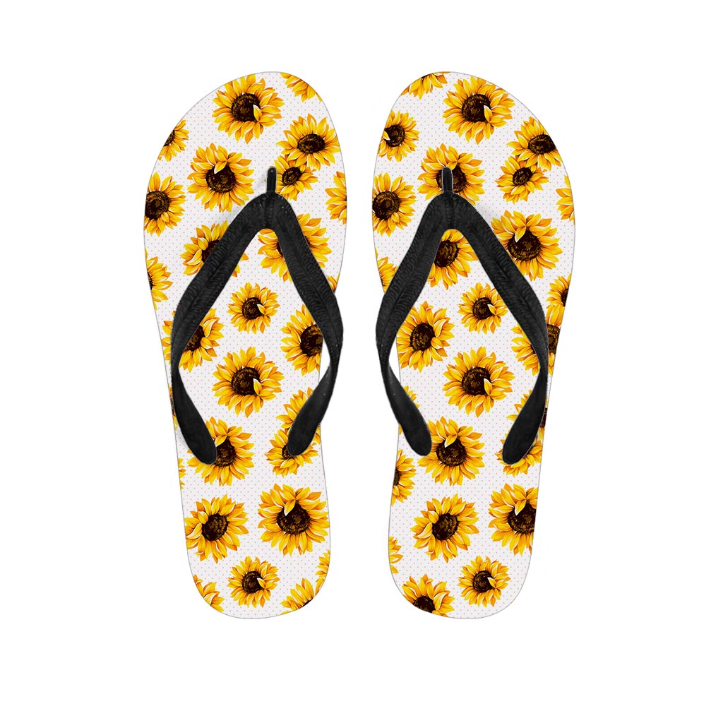 Sunflower Polka Dot Pattern Print Flip Flops For Men Women