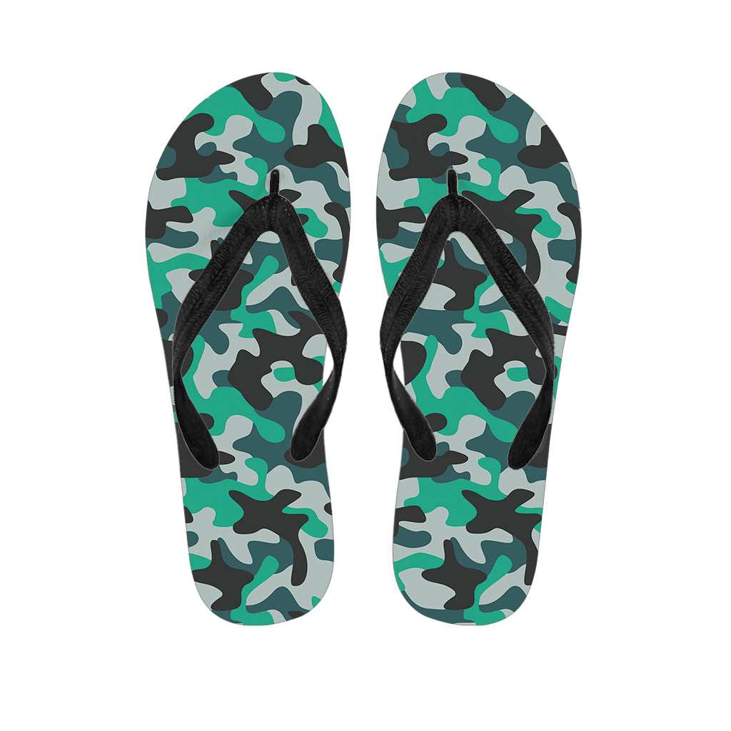 Teal And Black Camouflage Print Flip Flops For Men Women