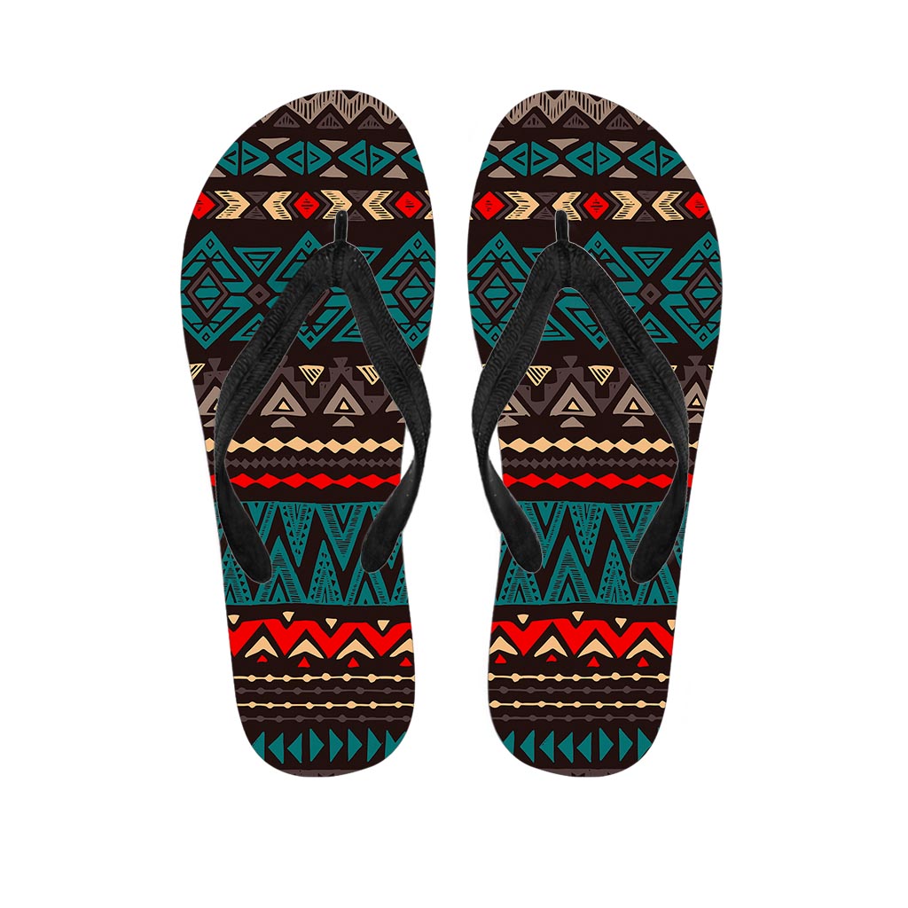 Teal And Brown Aztec Pattern Print Flip Flops For Men Women