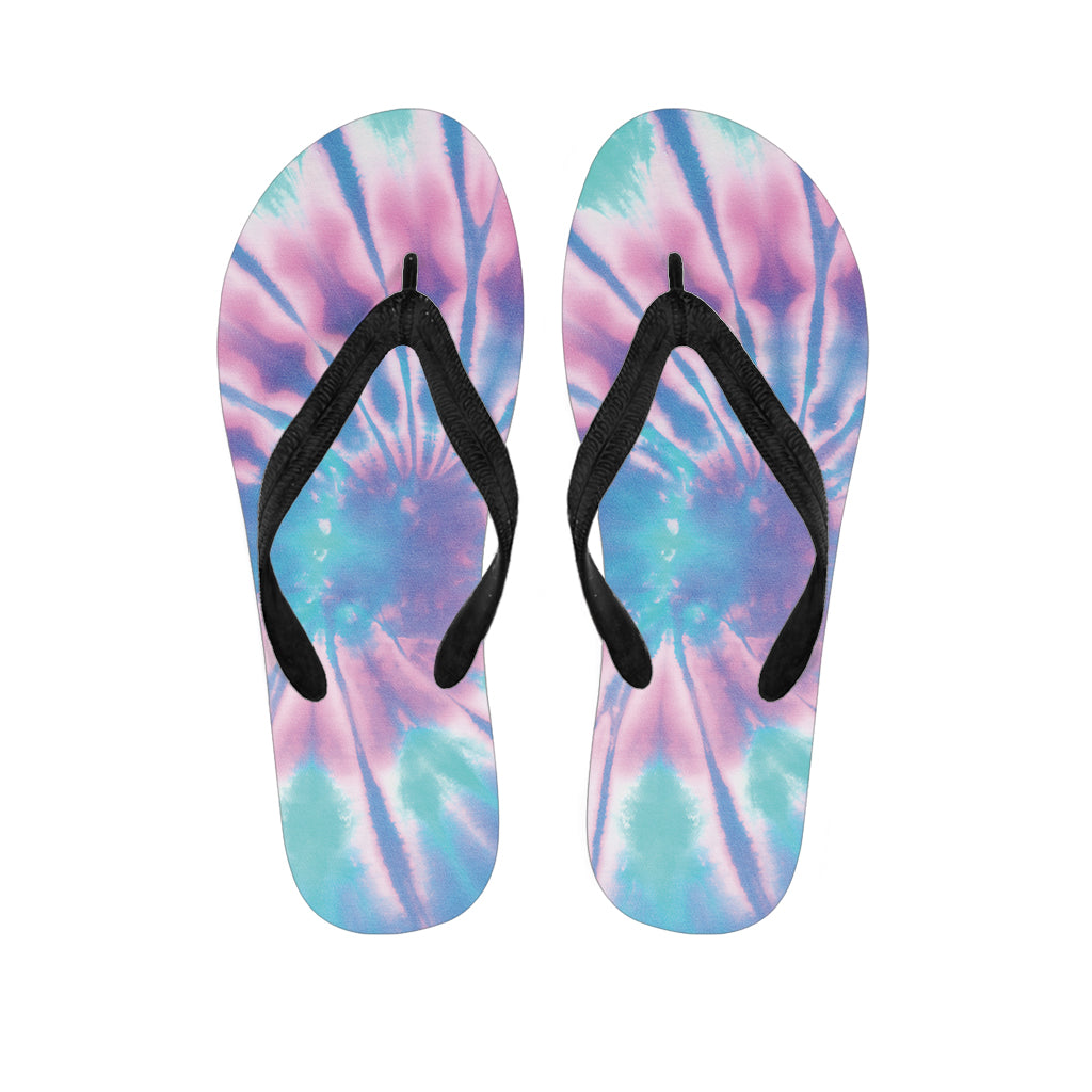 Teal And Pink Tie Dye Print Flip Flops For Men Women